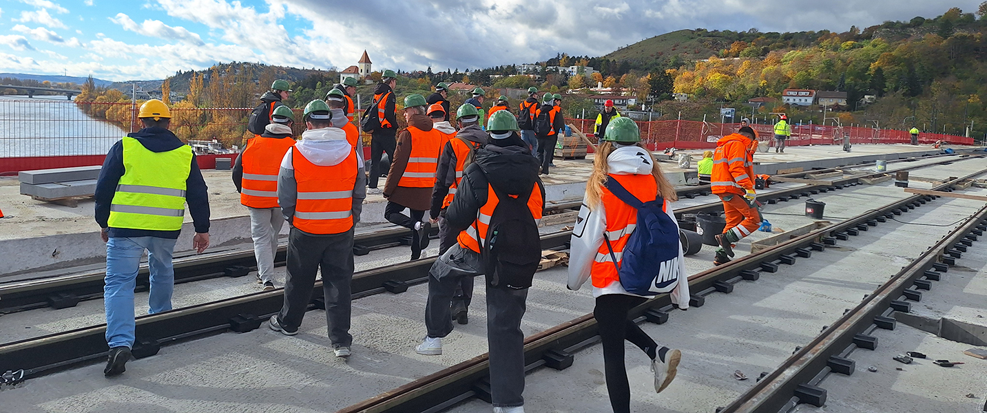 Mezi Podolím a Smíchovem roste nový most, který má Prahu propojit nejen po dopravní stránce, ale i vizuálně – Dvorecký most. Elegantní konstrukce s kubistickými liniemi a plánovanou světelnou galerií pod mostem patří dozajista k nejzajímavějším stavbám současné Prahy. A právě tam se vydali studenti tříd 3. A, 4. A a 4. B oboru stavebnictví se zaměřením na dopravní stavby, aby viděli, jak taková stavba vzniká přímo v terénu.